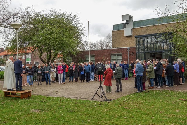 ![]() Op 27 en 28 september 2025 vierden we 60-jarig van de Markuskerk. Na de feestelijke vering op zondag liepen we naar de toren van d Michaelkerk waar we de kerkgangers van de Michaelkerk ontmoetten.