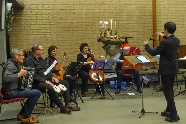 ![]() Dit Ensemble voor jong en oud van de Protestantse Gemeente Breda luistert vieringen van onze kerk op en speelt ook tijdens andere evenementen zoals feestelijke maaltijden en buurtactiviteiten waarbij wij als kerk ook aan deelnemen. Als je mee wilt spelen: je bent van harte welkom! Je kunt contact opnemen met Victor Witter (witter.nelson@hetnet.nl). |